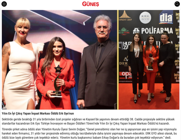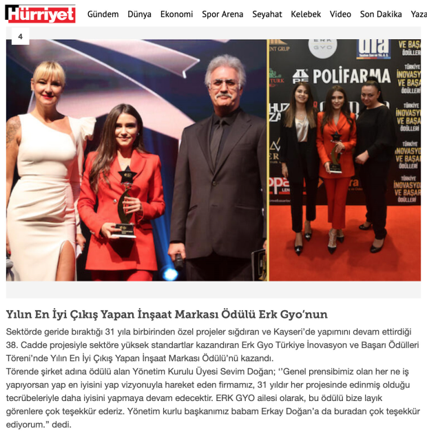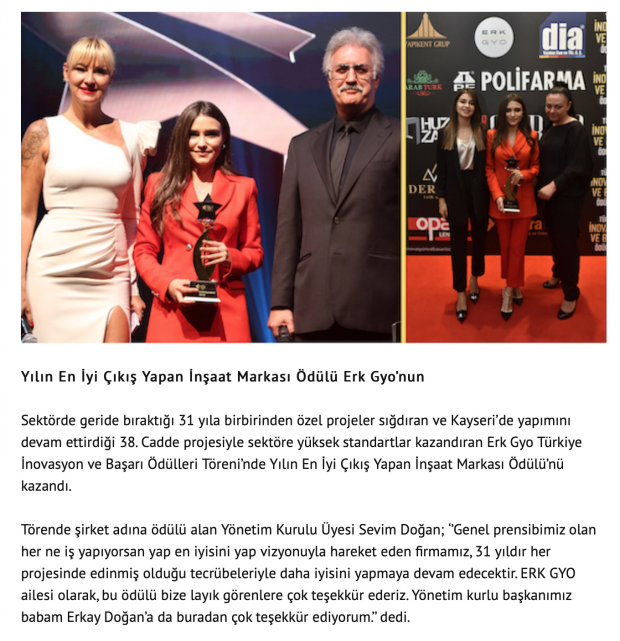 Erk Gyo ailesi olarak bize bu ödülü layık gören herkese çok teşekkür ediyoruz.31 yıldır her projemizde edindiğimiz tecrübelerimizle daha iyisini yapmaya devam edeceğiz.